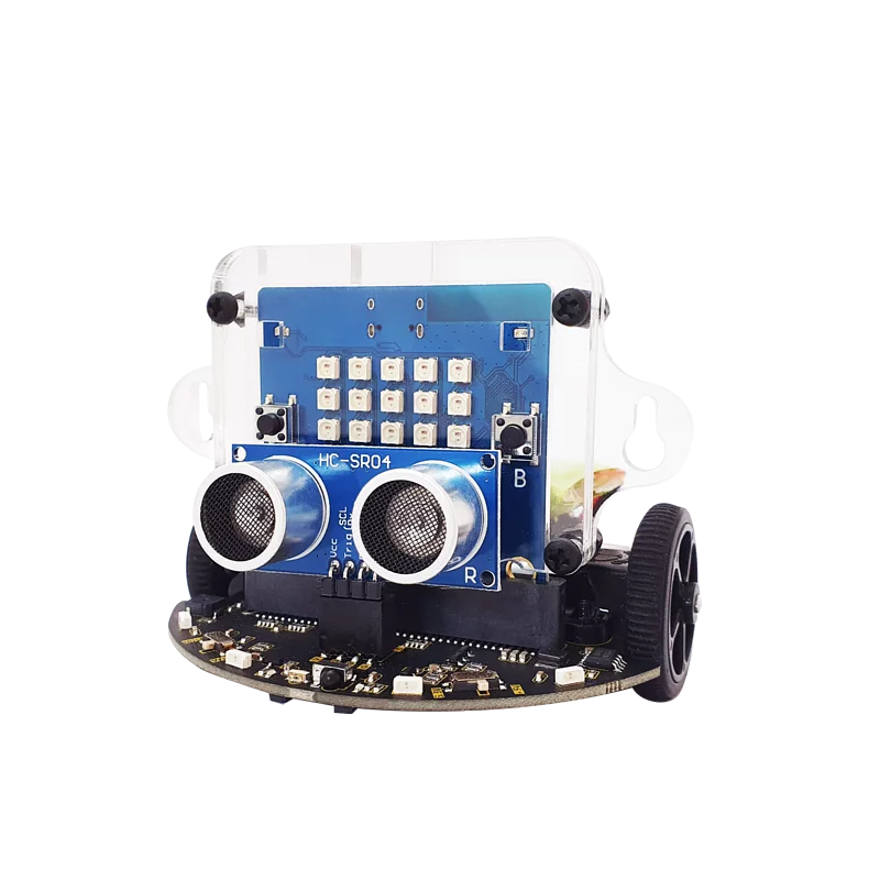 MoonCar 由 Webduino 和 iCShop 合作開發,是專門為 Web:Bit 開發板所設計的自走車,內建巡跡功能、顏色感測、紅外線發射接收與按鈕,結合 Web:Bit 就能讓點矩陣顯示各種顏色的圖案。前方保留超音波的腳位,可實作自動避障功能。透過 Web:Bit 教育版就能輕鬆實現更多有趣的控制方式!
